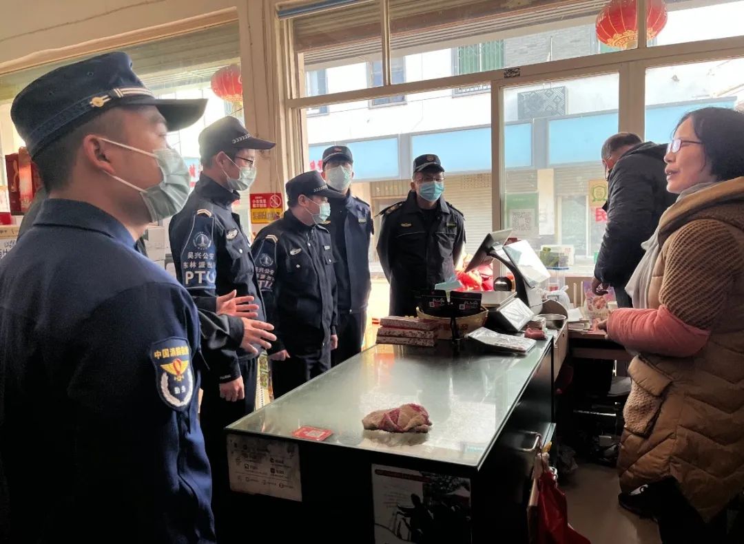 为落实吴兴区《关于确定禁止销售燃放烟花爆竹其他区域的通告》,吴兴区综合行政执法局东林中队依托“大综合一体化”平台,联合东林镇消防救援中心,应急管理服务中心,东林镇派出所,对辖区内3个集镇的商铺扎实开展了一次全方位、地毯式的烟花爆竹安全隐患排查整治行动。