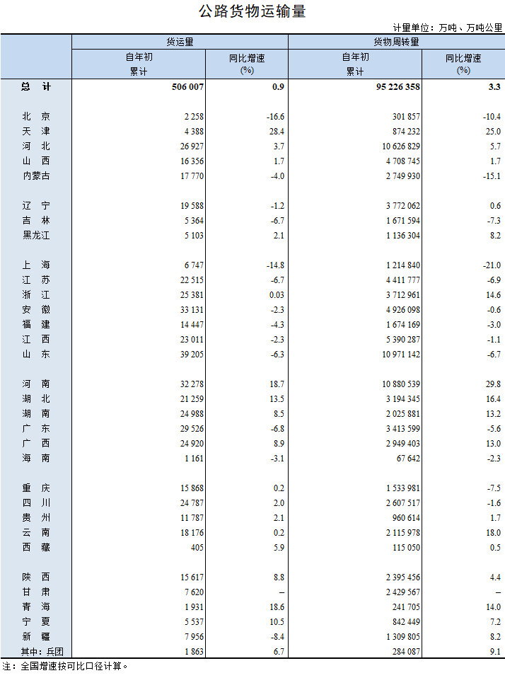2023年1-2月公路货物运输量