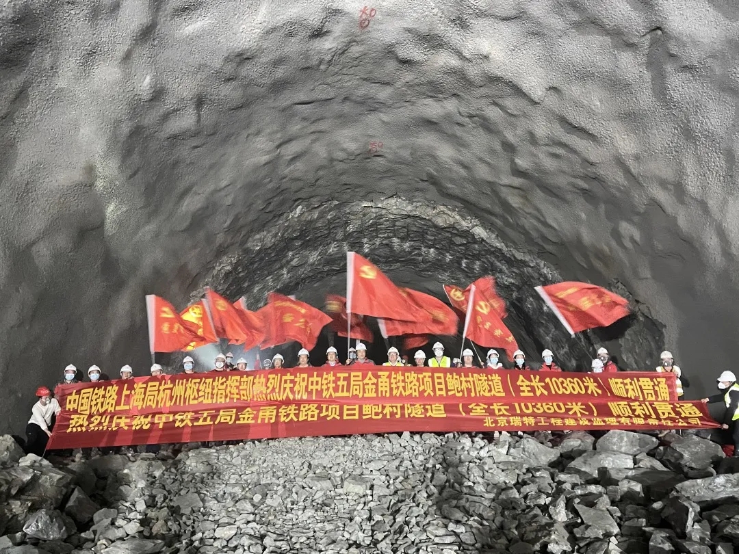 新建金华至宁波铁路全线最后一座长大隧道——鲍村隧道顺利贯通,标志着全线45座隧道全部贯通完成,为金甬铁路今年年底具备开通运营条件奠定了坚实的基础。